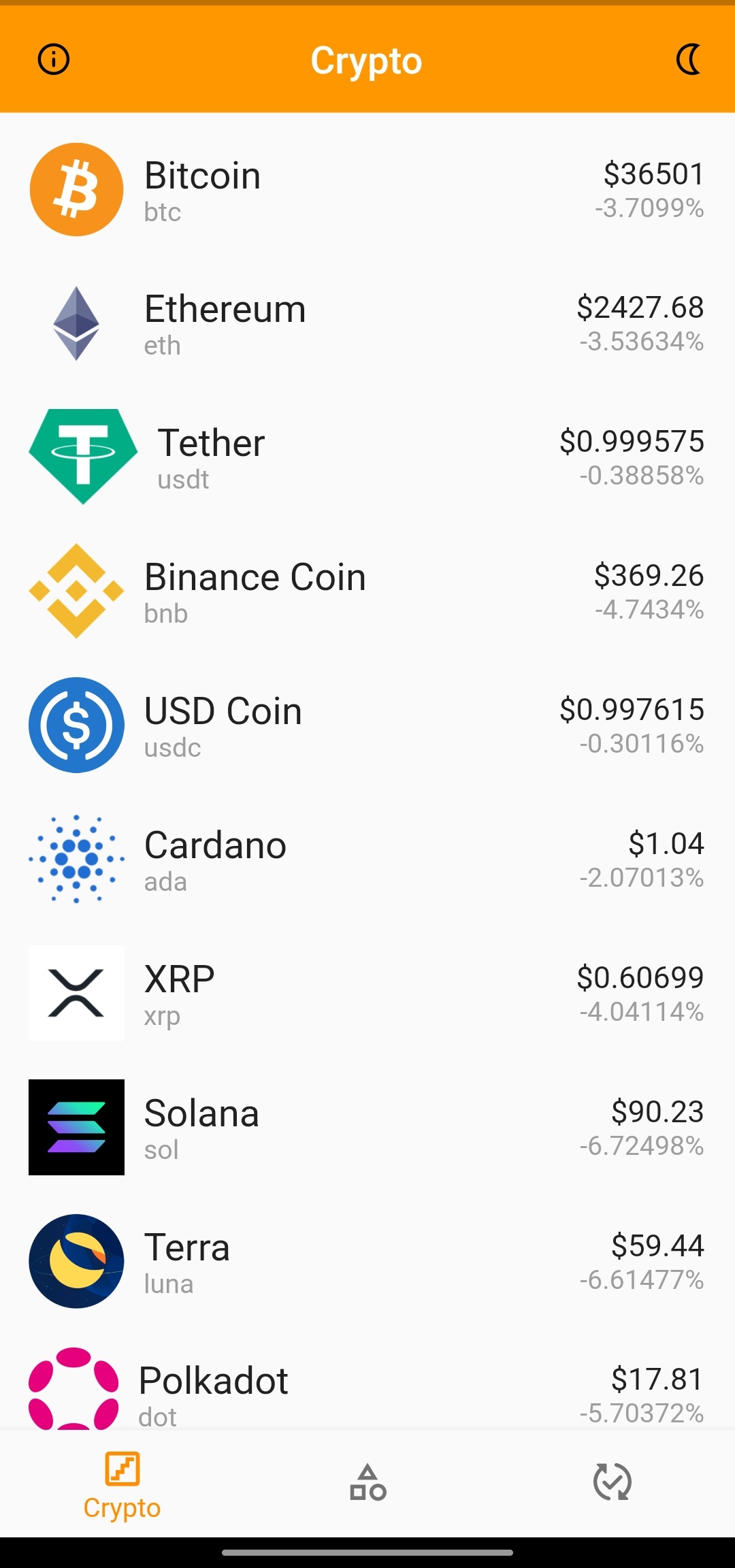 This app is cryptocurrency application developed by using flutter. In this app, you can see information about crypto coins and cryptocurrency price and exchanges. The data will be updated every second. You can see latest cryptocurrency price and information.